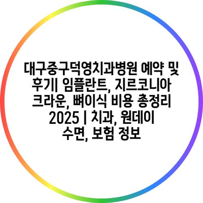 대구중구덕영치과병원 예약 및 후기| 임플란트, 지르코니아 크라운, 뼈이식 비용 총정리 2025 | 치과, 원데이 수면, 보험 정보 에 대해 자주 묻는 질문 TOP 5