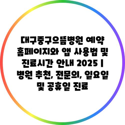 ✅ 대구중구으뜸병원의 예약 방법과 진료 시간을 지금 바로 알아보세요!