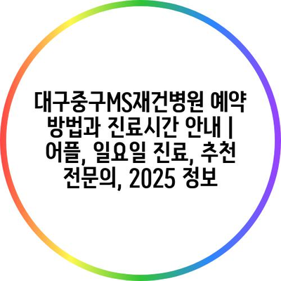 ✅ 대구중구MS재건병원 예약 방법을 쉽게 알아보세요!