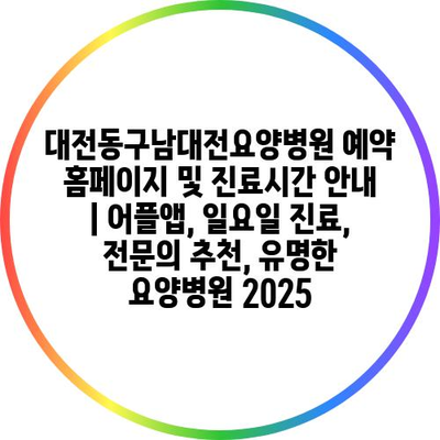 대전동구남대전요양병원 예약 홈페이지 및 진료시간 안내 | 어플앱, 일요일 진료, 전문의 추천, 유명한 요양병원 2025