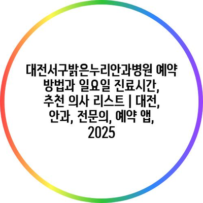 대전서구밝은누리안과병원 예약 방법과 일요일 진료시간, 추천 의사 리스트 | 대전, 안과, 전연락, 예약 앱, 2025 에 대해 자주 묻는 질문 TOP 5