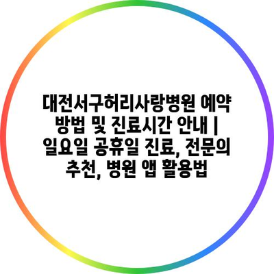 대전서구허리사랑병원 예약 방법 및 진료시간 안내 | 일요일 공휴일 진료, 전문의 추천, 병원 앱 활용법