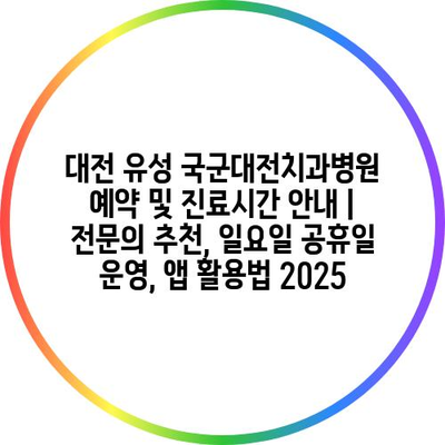 대전 유성 국군대전치과병원 예약 및 진료시간 공지 | 전연락 추천, 일요일 공휴일 운영, 앱 활용법 2025