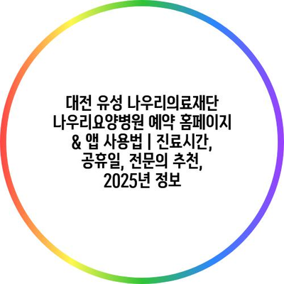 대전 유성 나우리의료재단 나우리요양병원 예약 홈페이지 & 앱 사용법 | 진료시간, 공휴일, 전연락 추천, 2025년 정보 에 대해 자주 묻는 질문 TOP 5