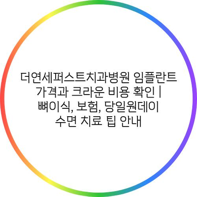 더연세퍼스트치과병원 임플란트 가격과 크라운 비용 확인 | 뼈이식, 보험, 당일원데이 수면 치료 팁 공지 에 대해 자주 묻는 질문 TOP 5