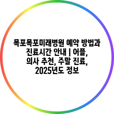 목포목포미래병원 예약 방법과 진료시간 공지 | 어플, 의사 추천, 주말 진료, 2025년도 정보 에 대해 자주 묻는 질문 TOP 5