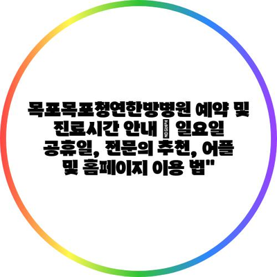 목포목포청연한방병원 예약 및 진료시간 안내 | 일요일 공휴일, 전문의 추천, 어플 및 홈페이지 이용 법”