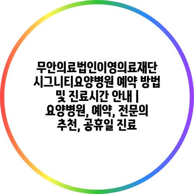 무안의료법인이영의료재단 시그니티요양병원 예약 방법 및 진료시간 공지 | 요양병원, 예약, 전연락 추천, 공휴일 진료 에 대해 자주 묻는 질문 TOP 5