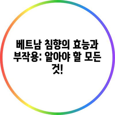 이 블로그 포스트는 베트남 침향의 성분, 효과, 부작용에 대한 심도 있는 정보를 제공합니다. 각 섹션은 관련된 표와 예시로 내용을 명확히 하였으며, 사용자에게 유용한 정보를 전달하고 있습니다.