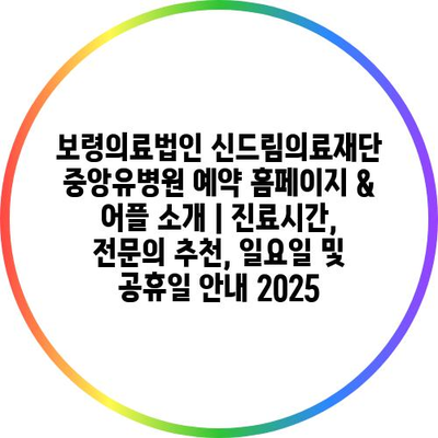 보령의료법인 신드림의료재단 중앙유병원 예약 홈페이지 & 어플 소개 | 진료시간, 전연락 추천, 일요일 및 공휴일 공지 2025에 대해 공지해 제공합니다.