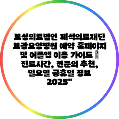 보성의료법인 제석의료재단 보광요양병원 예약 홈페이지 및 어플앱 이용 설명서 | 진료시간, 전연락 추천, 일요일 공휴일 정보 2025″ 에 대해 자주 묻는 질문 TOP 5