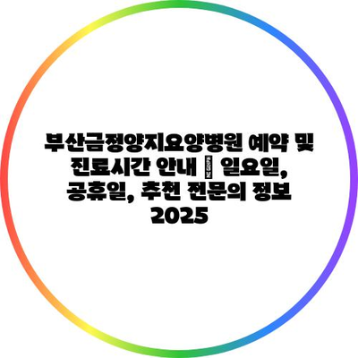 부산금정양지요양병원 예약 및 진료시간 공지 | 일요일, 공휴일, 추천 전연락 정보 2025 에 대해 자주 묻는 질문 TOP 5