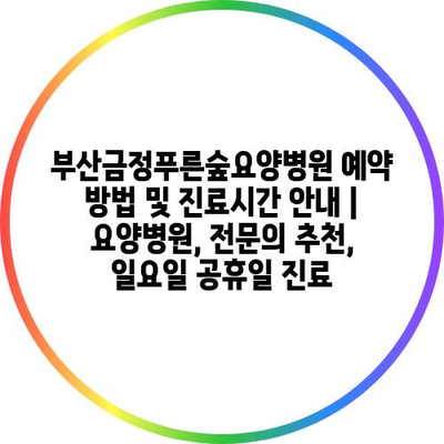 ✅ 부산금정푸른숲요양병원의 예약 방법과 진료시간을 자세히 알아보세요.