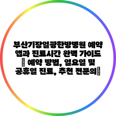 부산기장일광한방병원 예약 앱과 진료시간 완벽 가이드 | 예약 방법, 일요일 및 공휴일 진료, 추천 전문의🏥