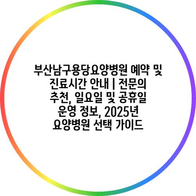 부산남구용당요양병원 예약 및 진료시간 공지 | 전연락 추천, 일요일 및 공휴일 운영 정보, 2025년 요양병원 선택 설명서 에 대해 자주 묻는 질문 TOP 5