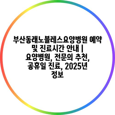 부산동래노블레스요양병원 예약 및 진료시간 공지 | 요양병원, 전연락 추천, 공휴일 진료, 2025년 정보 에 대해 자주 묻는 질문 TOP 5