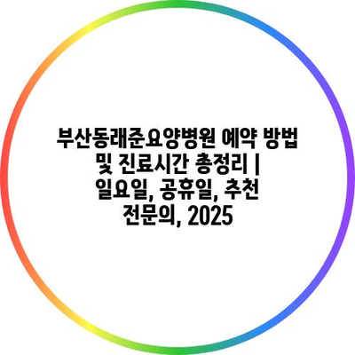 부산동래준요양병원 예약 방법 및 진료시간 총정리 | 일요일, 공휴일, 추천 전연락, 2025 에 대해 자주 묻는 질문 TOP 5
