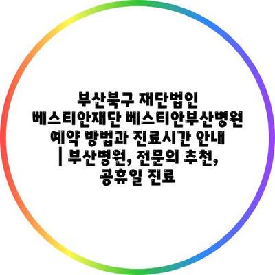 ✅ 베스티안부산병원의 예약 절차와 진료시간을 자세히 알아보세요.