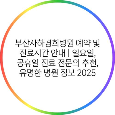 부산사하경희병원 예약 및 진료시간 공지 | 일요일, 공휴일 진료 전연락 추천, 유명한 병원 정보 2025 에 대해 자주 묻는 질문 TOP 5