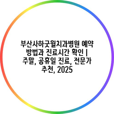 부산사하굿윌치과병원 예약 방법과 진료시간 확인 | 주말, 공휴일 진료, 전문가 추천, 2025 에 대해 자주 묻는 질문 TOP 5