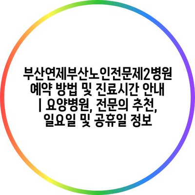 ✅ 부산연제부산노인전문제2병원의 예약 방법과 진료시간을 자세히 알아보세요.