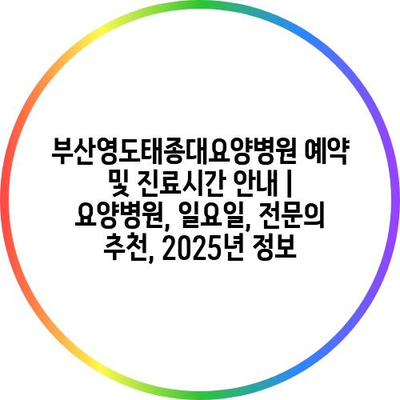 부산영도태종대요양병원 예약 및 진료시간 공지 | 요양병원, 일요일, 전연락 추천, 2025년 정보 에 대해 자주 묻는 질문 TOP 5