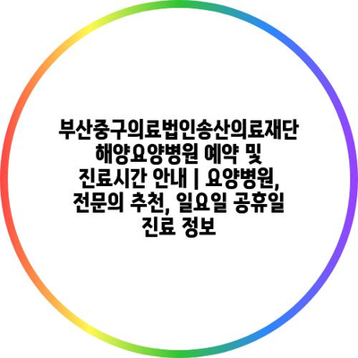 부산중구의료법인송산의료재단 해양요양병원 예약 및 진료시간 공지 | 요양병원, 전연락 추천, 일요일 공휴일 진료 정보 에 대해 자주 묻는 질문 TOP 5