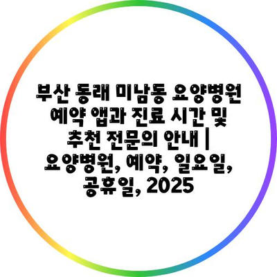 부산 동래 미남동 요양병원 예약 앱과 진료 시간 및 추천 전연락 공지 | 요양병원, 예약, 일요일, 공휴일, 2025 에 대해 자주 묻는 질문 TOP 5