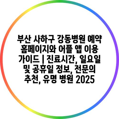 부산 사하구 강동병원 예약 홈페이지와 어플 앱 이용 설명서 | 진료시간, 일요일 및 공휴일 정보, 전연락 추천, 유명 병원 2025 에 대해 자주 묻는 질문 TOP 5