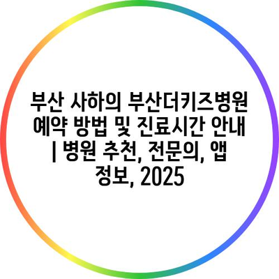 부산 사하의 부산더키즈병원 예약 방법 및 진료시간 공지 | 병원 추천, 전연락, 앱 정보, 2025 에 대해 자주 묻는 질문 TOP 5