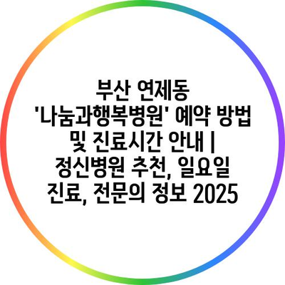 부산 연제동 ‘나눔과행복병원’ 예약 방법 및 진료시간 공지 | 정신병원 추천, 일요일 진료, 전연락 정보 2025 에 대해 자주 묻는 질문 TOP 5
