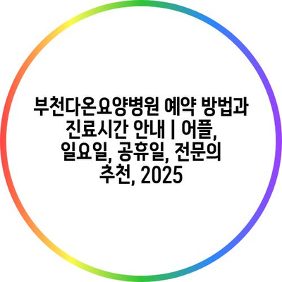 부천다온요양병원 예약 방법과 진료시간 안내 | 어플, 일요일, 공휴일, 전문의 추천, 2025