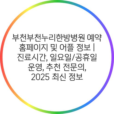 부천부천누리한방병원 예약 홈페이지 및 어플 정보 | 진료시간, 일요일/공휴일 운영, 추천 전연락, 2025 최신 정보 에 대해 자주 묻는 질문 TOP 5