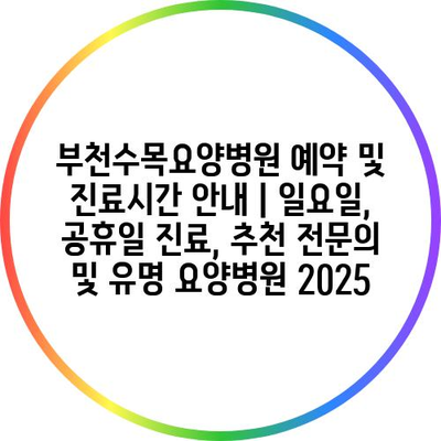 부천수목요양병원 예약 및 진료시간 공지 | 일요일, 공휴일 진료, 추천 전연락 및 유명 요양병원 2025 에 대해 자주 묻는 질문 TOP 5