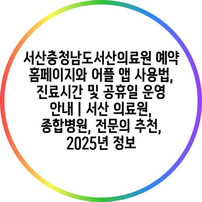 서산충청남도서산의료원 예약 홈페이지와 어플 앱 사용법, 진료시간 및 공휴일 운영 안내 | 서산 의료원, 종합병원, 전문의 추천, 2025년 정보