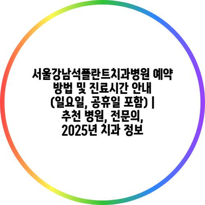 서울강남석플란트치과병원 예약 방법 및 진료시간 공지 (일요일, 공휴일 포함) | 추천 병원, 전연락, 2025년 치과 정보 에 대해 자주 묻는 질문 TOP 5