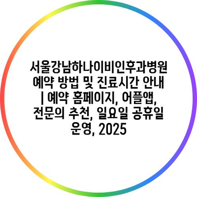 서울강남하나이비인후과병원 예약 방법 및 진료시간 공지 | 예약 홈페이지, 어플앱, 전연락 추천, 일요일 공휴일 운영, 2025 에 대해 자주 묻는 질문 TOP 5