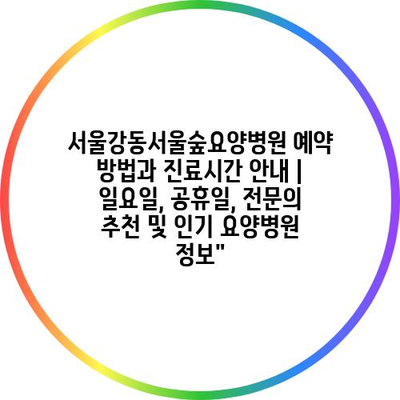 서울강동서울숲요양병원 예약 방법과 진료시간 안내 | 일요일, 공휴일, 전문의 추천 및 인기 요양병원 정보”
