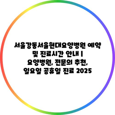 서울강동서울현대요양병원 예약 및 진료시간 공지 | 요양병원, 전연락 추천, 일요일 공휴일 진료 2025 에 대해 자주 묻는 질문 TOP 5