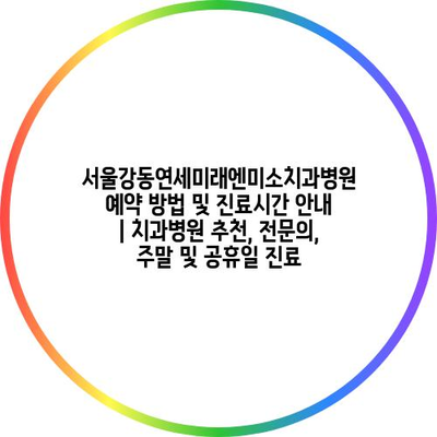 서울강동연세미래엔미소치과병원 예약 방법 및 진료시간 공지 | 치과병원 추천, 전연락, 주말 및 공휴일 진료 에 대해 자주 묻는 질문 TOP 5