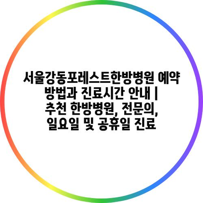 서울강동포레스트한방병원 예약 방법과 진료시간 공지 | 추천 한방병원, 전연락, 일요일 및 공휴일 진료에 대해 자주 묻는 질문 TOP 5
