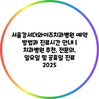 서울강서더와이즈치과병원 예약 방법과 진료시간 공지 | 치과병원 추천, 전연락, 일요일 및 공휴일 진료 2025에 대해 자주 묻는 질문 TOP 5