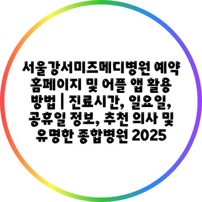 서울강서미즈메디병원 예약 홈페이지 및 어플 앱 활용 방법 | 진료시간, 일요일, 공휴일 정보, 추천 의사 및 유명한 종합병원 2025