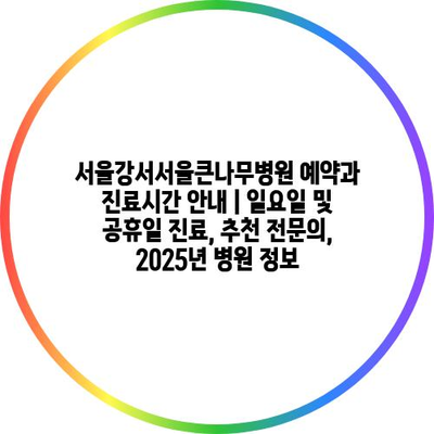 서울강서서울큰나무병원 예약과 진료시간 공지 | 일요일 및 공휴일 진료, 추천 전연락, 2025년 병원 정보 에 대해 자주 묻는 질문 TOP 5