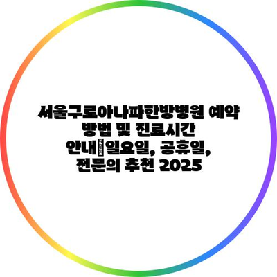 서울구로아나파한방병원 예약 방법 및 진료시간 공지|일요일, 공휴일, 전연락 추천 2025 에 대해 자주 묻는 질문 TOP 5