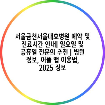 서울금천서울대효병원 예약 및 진료시간 공지| 일요일 및 공휴일 전연락 추천 | 병원 정보, 어플 앱 이용법, 2025 정보 에 대해 자주 묻는 질문 TOP 5