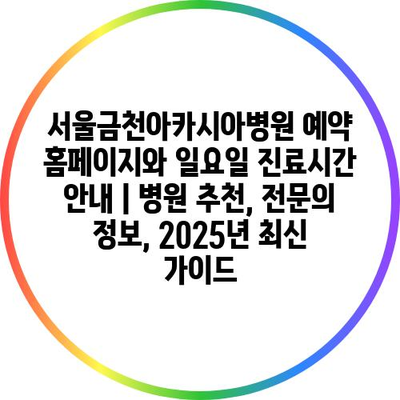서울금천아카시아병원 예약 홈페이지와 일요일 진료시간 공지 | 병원 추천, 전연락 정보, 2025년 최신 설명서 에 대해 자주 묻는 질문 TOP 5