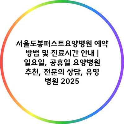 서울도봉퍼스트요양병원 예약 방법 및 진료시간 공지 | 일요일, 공휴일 요양병원 추천, 전연락 상담, 유명 병원 2025 에 대해 자주 묻는 질문 TOP 5