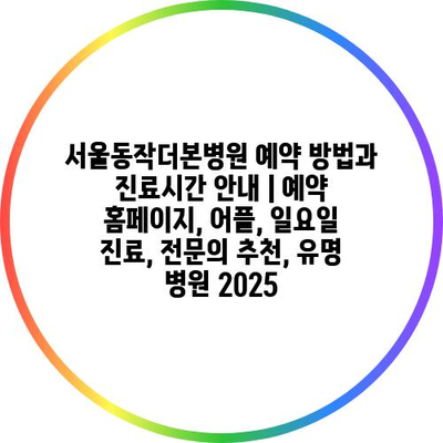 서울동작더본병원 예약 방법과 진료시간 공지 | 예약 홈페이지, 어플, 일요일 진료, 전연락 추천, 유명 병원 2025 에 대해 자주 묻는 질문 TOP 5