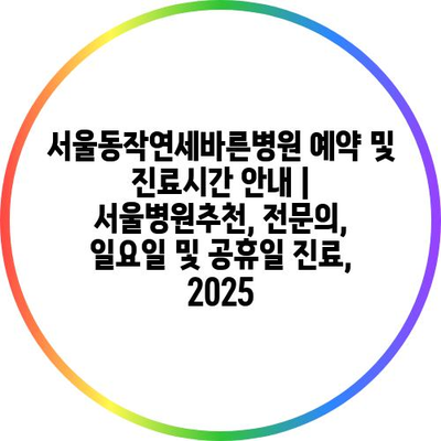 서울동작연세바른병원 예약 및 진료시간 안내 | 서울병원추천, 전문의, 일요일 및 공휴일 진료, 2025
